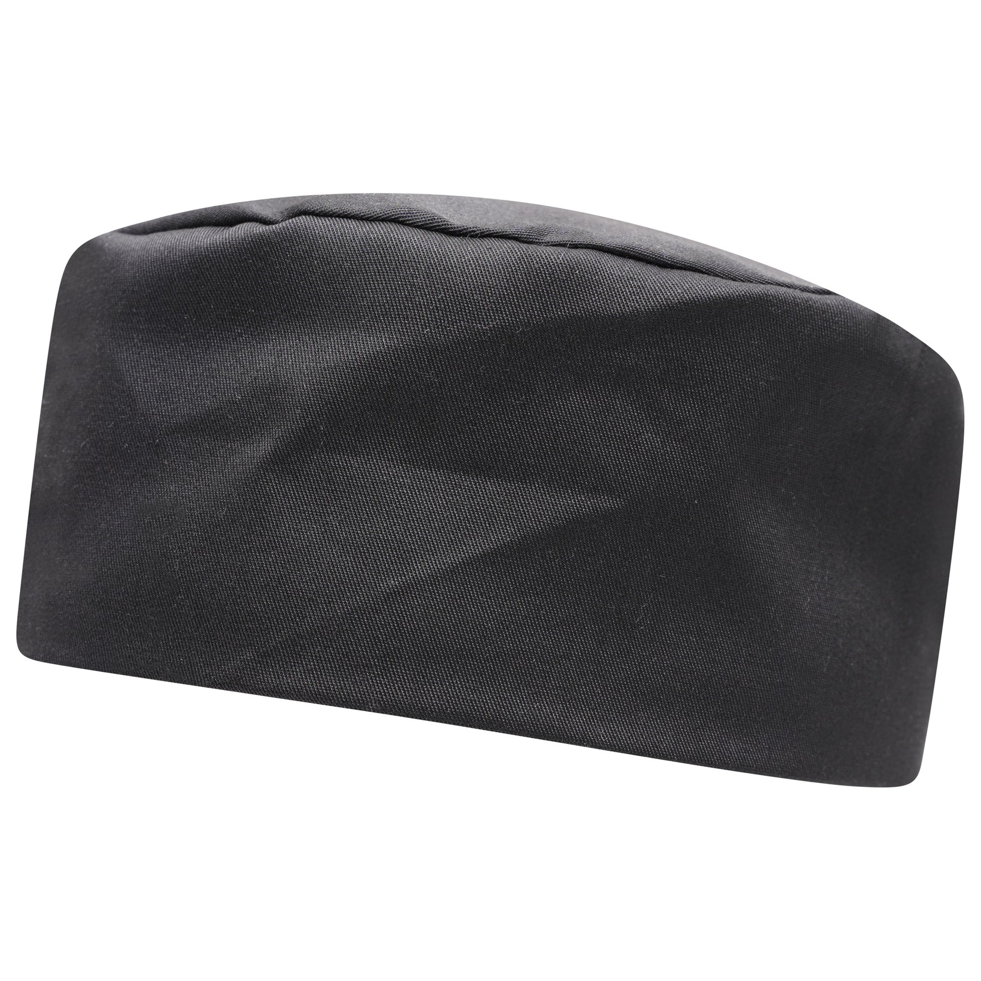 Wash regularly after use. Because the cap is 65% polyester and 35% cotton at 195gsm and is vat dyed, machine wash on a warm cycle (around 40°C) with mild detergent to remove oils and food particles, and tumble dry on low or hang dry to avoid excessive shrinkage. Avoid bleach or harsh chemicals which can weaken the fabric and affect the dye; vat-dyed fabrics have good colourfastness but heavy bleaching will still damage them. Iron on a medium setting if needed. For workplace hygiene, wash caps after each shift or more often if heavily soiled. If your kitchen requires flame-retardant garments or specific certification, confirm this cap meets those standards, because standard polycotton caps are not automatically certified flame-resistant.